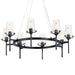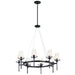 This Alton 8-light linear chandelier in Polished Chrome combines industrial-era detailing and soft modern style. While its "nuts & bolt" hardware accents create a look that works in both traditional or modern décors.