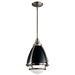 A two-tone finish featuring Classic Pewter and industrial-era hardware give this 1-light pendant from the Ayra collection a vintage vibe that`s at home over a table or island, in a foyer or flanking a chair with mid-century modern style. The contrasting colors add visual interest while the Satin Etched glass softly defuses the light.