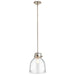 Generously sized to make a beautiful statement, the 1-light pendant in Polished Nickel from the Briar collection is both bold and simple. The top fitter gives it an industrial flair, while the bell shaped clear glass globes assure clean sight lines in open spaces.