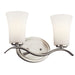 This 2 light bath light from the Armida collection is filled with contemporary touches and clean lines. This silhouette brings height and dimension to the Brushed Nickel finish. May be installed with the glass up or down. This fixture features LED Light Bulbs which are Energy-Star certified.