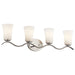 This 4 light bath light from the Armida collection is filled with contemporary touches and clean lines. This silhouette brings height and dimension to the Brushed Nickel finish. May be installed with the glass up or down. This fixture features LED Light Bulbs which are Energy-Star certified.