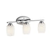 The Eileen 24" 3 light LED vanity light features a contemporary look with its Chrome finish and satin etched cased opal glass. Inspired by furniture designer Eileen Gray, the Eileen vanity light features a clean, straight linear construction with simple glass for a style that is perfect in several aesthetic environments, including traditional and modern.