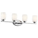 Named after famed furniture designer Eileen Gray, this 4 light bath fixture from the Eileen Collection features a clean, straight linear construction. The clean, polished elegance of the Chrome finish and Etched Opal Glass creates an ideal complement for your home. This fixture features LED Light Bulbs which are Energy-Star certified.