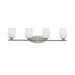 Named after famed furniture designer Eileen Gray, this 4 light bath fixture from the Eileen Collection features a clean, straight linear construction. The fresh, weightless elegance of our Brushed Nickel finish complements the white etched glass perfectly to give the Eileen Collection the added ambiance that is ideal for today's ever-evolving aesthetic. This fixture features LED Light Bulbs which are Energy-Star certified.