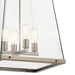 The Darton(TM) 25.75in. 4 light large foyer pendant with fluid lines with clear glass and Classic Pewter finish. A perfect addition in several aesthetic environments, including traditional, transitional and contemporary.