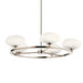 The Pim(TM) 40in. 5 light round chandelier features a nostalgic mid century modern design in Polished Nickel and rounded shaped satin etched cased opal glass. A perfect addition in several aesthetic environments including contemporary and transitional.