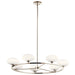 The Pim(TM) 40in. 7 light round chandelier features a nostalgic mid century modern design in Polished Nickel and rounded shaped satin etched cased opal glass. A perfect addition in several aesthetic environments including contemporary and transitional.