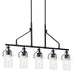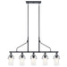 The Everett 42 inch 5 light linear chandelier adds a dash of industrial glam to your space. Five mini Clear Glass pendants are suspended from a uniquely designed Black bar. Look closely, and you'll see delicate discs hold each pendant â and your attention.