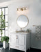The Everett 34 inch 3 light vanity light adds a dash of industrial glam above your bathroom mirror. Three mini Clear Glass pendants are suspended from curved arms and a round backplate in Polished Nickel. Look closely, and you'll see delicate discs hold each pendant â and your attention.