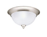 Utilizing the timeless Brushed Nickel finish with Etched seedy glass cover, this flush mount ceiling fixture is perfect for any room or hallway. Its 3-light design employs 60-watt (max.) bulbs, with the fixture measuring 15.5" in diameter with a body height of 8".