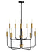 Austenâs slim, exaggerated design creates a chic transitional shape accentuated by knurled candle sleeves and stem details. Black and Lacquered Brass finishes are complemented by exposed bulbs. Experiment with different lamps to find a look thatâs perfect for your space.