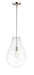 The crystal clear, large-scale glass pendants attest to the craft of hand-blown glass with their impressive scale. These hand crafted glass pendants embody simplicity and minimalism. Accented with Satin Nickel hardware, the style pairs well in a variety of settings.