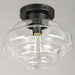 A sizable layered glass oscillates depth and is supported by three industrial set screws for support. Available as a pendant or flush mount, the pendant also features an oversized ring to evoking nautical vibes while remaining minimalist in its design. Available in Satin Brass, Satin Nickel, or Matte Black, pair the clear glass shades with a vintage filament lamps to complete the look.