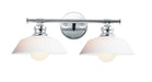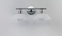 Satin White cased glass shades in an RLM shape are mounted to a nostalgic Polished Chrome frame to create this clean and classic look. The larger scale glass sets this look apart and makes a statement over the vanity.