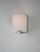 Satin White bands of cased glass wrap around each lamp creating a soft ribbon of light. Back plates finished in Polished Chrome or Satin Nickel complement the majority of bath fittings.