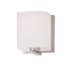 Satin White bands of cased glass wrap around each lamp creating a soft ribbon of light. Back plates finished in Polished Chrome or Satin Nickel complement the majority of bath fittings.