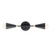 A classic mid-century look, the Lovell collection features two sizes of sputnik chandeliers and streamlined sconces perfect for bath vanity applications. Available in a Black/Satin Brass finish combination. Light bulbs nest inside the metal cones to become an element of the design.