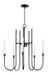 Updating the traditional chandelier form, the Tux collection uses elongated sweeping lines evocative of the mid-20th century and stripped down ornamentation to create a transitional lighting product relevant again. The two-tone Black and White powder coated finish offers a neutral color palette, which coordinates perfectly with a variety of settings. Use decorative tubular bulbs or globes to dress up the design, or keep it classic with candelabra lamps.