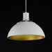 Sockets are suspended above a metal spun dome in your choice of Black or White with Gold accents or Satin Nickel with Black accents. A clean and simple approach to modern or transitional lighting, the opening allows light to shine through the opening atop while providing functional light below. This break in the two parts is supported with straps and decorative rivets in complimentary finishes for a subtlety tasteful two-tone finish. A coordinating pin-up wall sconce offers a bedside application to this design with integrated switch on its back plate and two feet of cord cover that can be removed and hardwired per your preference.