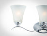 Gently waving arms of Satin Nickel or Oil Rubbed Bronze support tall-profile Frosted glass shades creating a scale normally not found in this category of lighting. The bath vanity may be installed up or down and also includes a Polished Chrome finish.