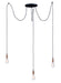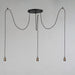 Cords of Black fabric support metal sockets finished in a natural Antique Brass allow you to create unique and fun lighting. All except the single pendant are supplied with hangers that attach to the ceiling to allow you to swag each socket. There are a number of optional bulbs to choose from.