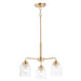 A modest frame of steel tubing gently bends to support a cluster of Clear Seedy bell-shaped glass. Similarly the bobeches and other metal accents echo that traditional bell shape creating an instant classic. An easy choice with transitional appeal, choose from a variety of complimentary finishes including matte Black, Heritage Brass or Satin Nickel.