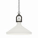Pure White plaster sloping cones are hung on chains connected to a modern yoke structure finished in your choice of Aged Brass or Matte Black. The charming earthiness of the plaster is juxtaposed by the modern, angular hanging structure with Scandinavian influence in its form making this collection folksy and refreshing.