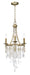 Smaller scale chandeliers finished in Golden Silver are draped with strands of Capiz Shell and crystal. These chandeliers work well in bedroom and bath areas as well as smaller dining rooms.