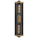 Internally ribbed clear glass tubes refract tubular lamps, creating a shimmering light effect. The glass is supported by a two-tone black frame with Aged Brass accents, making this sconce suitable for both indoor and outdoor installations. With a depth of less than 4 inches, this ADA compliant sconce may also be used in commercial applications. .