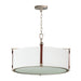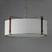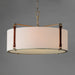Inspired by the artist enclave north of San Francisco, pastoral elements influence this series of drum shades. Stirrup-like hooks support genuine suede straps in a Tobacco Brown finish which in turn suspend drum shades in an Off-white linen fabric. Metalwork in a hand-applied Weathered Zinc finish frame the frosted glass diffuser at the bottom to softly diffuse the lighting within. Head out West with this rustic, yet refined design.