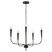 A simple candle style chandelier is given a modern edge with tall tapered candle covers that sit at the ends of curved arms without a bobeche beneath them. Available in Satin Brass or Matte Black, the collection compliments many architectural interiors and allows for creative styling through the selection of lamp type. Pair with our T6 lamp for more modern, industrial flair or classic candelabra for a clean, transitional look. This series provides a convenient new take on the candle chandelier with subtle and unique design details.