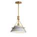 Metal shades of Light French Gray are suspended from halos of Natural Aged Brass. Maximizing the light output, the interior of the shades are painted white and their tops are left open casting light both upwards and below. The collection is completed by a delightful pull-chain operated wall sconce that provides a practical light source ideal for a reading nook or bedside.
