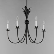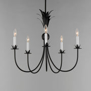 Effortlessly elegant, the biophilic design details that adorn this classic chandelier transport you to an oasis indoors. The design, whether brilliantly gilt in Gold Leaf or hand painted in a textured Anthracite finish, exudes a timeless quality that is sure to please. The graceful form of the chandeliers is constructed of slender metal tubes that sprout from a spherical collector at the center and Off-White metal candle covers. Coordinating Wall Sconces, Pendants and Flush Mount feature matching leaf clusters that allow for coordinating applications throughout the home.