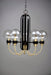 This classic Mid Century Modern design features a frame finished in a combination of Bronze and Satin Brass. The arms terminate at rings that support Clear heavy blown glass shades which were prevalent in this era.