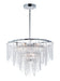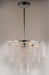 Hand formed glass petals suspend from a tiered frame of Polished Chrome. The glass is transparent yet cloudy, softly diffusing the light while creating a clean and crisp design.