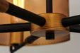 Inner shades of perforated metal are finished in a soft Antique Brass and accented by bands in a complimentary Oil Rubbed Bronze. The light from inside peeks through the perforations and creates an interesting lighting effect. The large scale of the pendants are well suited for larger rooms and hospitality applications.