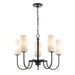 Whether in town or countryside, this collection of chandeliers simplifies the classic curved frame with a modern approach. Finished in your choice of Satin Brass or Matte Black, the sharply curved arms extend higher than classic proportions and support ribbed cylinders of opal white glass shades. These Satin White glasses upgrade pleated shades by form of their ribbed details. Available in two sizes of chandelier and a linear 4-light pendant, this collection finds its place at home in a variety of applications and fits in regardless of whether its town or country.