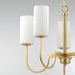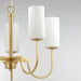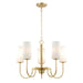 Whether in town or countryside, this collection of chandeliers simplifies the classic curved frame with a modern approach. Finished in your choice of Satin Brass or Matte Black, the sharply curved arms extend higher than classic proportions and support ribbed cylinders of opal white glass shades. These Satin White glasses upgrade pleated shades by form of their ribbed details. Available in two sizes of chandelier and a linear 4-light pendant, this collection finds its place at home in a variety of applications and fits in regardless of whether its town or country.