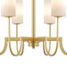 Whether in town or countryside, this collection of chandeliers simplifies the classic curved frame with a modern approach. Finished in your choice of Satin Brass or Matte Black, the sharply curved arms extend higher than classic proportions and support ribbed cylinders of opal white glass shades. These Satin White glasses upgrade pleated shades by form of their ribbed details. Available in two sizes of chandelier and a linear 4-light pendant, this collection finds its place at home in a variety of applications and fits in regardless of whether its town or country.