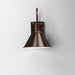 The conical metal shades on these outdoor sconces draw inspiration fromÃÂ the heartland using embellishmentsÃÂ such as riveted accentsÃÂ and fastened rings to add rustic charm. The products areÃÂ finished in a richÃÂ Bronze outdoor rated powder coat, andÃÂ complements similarly styled exterior elements such as honedÃÂ stone facades and woodÃÂ siding.