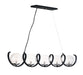 Rectangular metal channel, finished in Black, is meticulously formed in a curl design to create a unique and dramatic design. Clear Seedy glass balls supported by cups of Polished Nickel are strategically positioned to balance out the design.