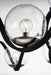 Rectangular metal channel, finished in Black, is meticulously formed in a curl design to create a unique and dramatic design. Clear Seedy glass balls supported by cups of Polished Nickel are strategically positioned to balance out the design.