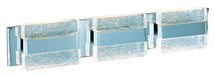 Blocks of piastra style Iceberg glass sparkle and shimmer from the high powered LEDs concealed inside Polished Chrome metal supports. Not only Is useful light directed down, additional light is cast indirectly upwards and into the room for even and soft illumination.