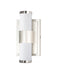 Cylinders of White cased glass are mounted onto a cast aluminum frame of Satin Nickel or Polished Chrome. LED modules evenly illuminate and provide soft yet ample illumination. Multi volt input is standard which allows for installation into commercial applications.