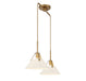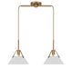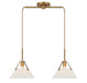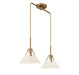 Keep your sense of style in balance with this highly chic 2-light chandelier. Two sleek lengths of cord are topped with pleated white fabric shades that also allow a little peek at the light bulb above the shade. Natural brass finish. 15.50" height, 29" length, 10.50" width. Max height 135.50". Max 60 watts per bulb, standard size A19 bulbs recommended. LED bulb compatible. Supplied with 120" of cord.