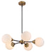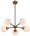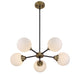 Find eye-catching mid-century modern style with this 5-light chandelier! It features a stylish two-tone blend of brass and oiled rubbed bronze finishes, paired with orbs of white opal glass. 5" in height and 26.75" in width.