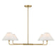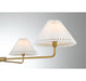 Find a polished and elegant lighting look with this 4-light chandelier, which features minimalistic styling and crisp white pleated fabric shades. Finished in natural brass. 12.25" height and 41" width. Uses four candelabra size bulbs with a max of 60 watts per bulb (not included). Supplied with four 12" downrods and one 6" downrod.