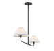 Find a polished and elegant lighting look with this 2-light trestle, which features minimalistic styling and crisp white pleated fabric shades. Finished in matte black. 11" height, 44" length and 9" width. Uses two candelabra size bulbs with a max of 60 watts per bulb (not included). Supplied with four 12" downrods and one 6" downrod.