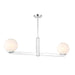 This 2-light linear chandelier flaunts a fabulously Art Deco look. The slim, straight arms are each topped with an orb of strie glass featuring dazzling swirls that draw the eye, soften the glow and work beautifully with the Chrome finish. Knurled detailing below each glass shade adds an extra touch of style. This linear chandelier is 42" in length, 8" in width and has an adjustable height ranging from 12" to 66". Comes with four 12" downrods and one 6" downrod. Uses 2 standard size bulbs of up to 60 watts per bulb. Bulbs not included.
