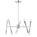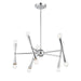 Make a scene with the unique silhouette of this 10-light chandelier! Cone-shaped arms finished in Chrome burst forth from the center, jutting out at jaunty angles and bearing bare bulbs to let the light shine brightly. This chandelier is 24" in width and has an adjustable height ranging from 10" to 64". Comes with four 12" downrods and one 6" downrod. Uses 10 candelabra size bulbs of up to 60 watts per bulb. We recommend using globe-shaped bulbs for heightened appeal. Bulbs not included.